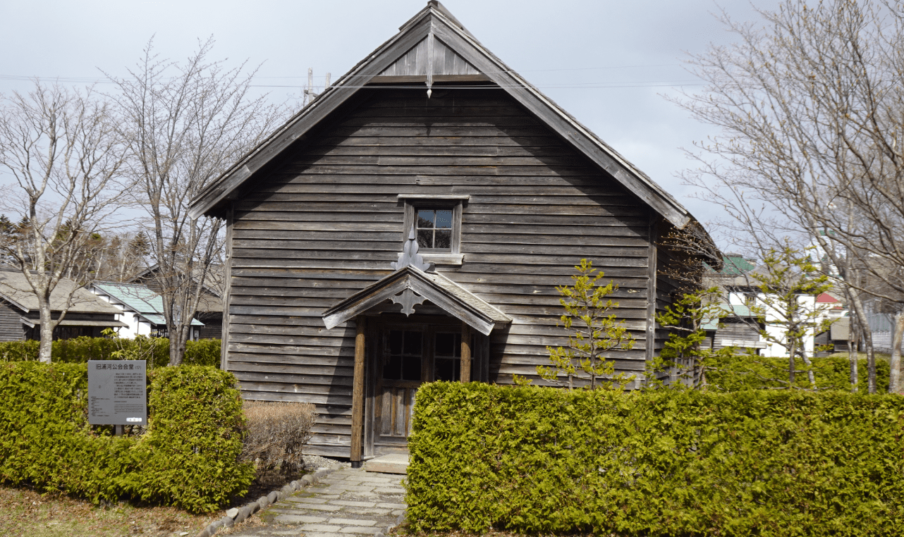 開拓の村の「旧浦河公会会堂」はキリスト教徒を主とする団体移住者たちの心のよりどころとなった建物です。
