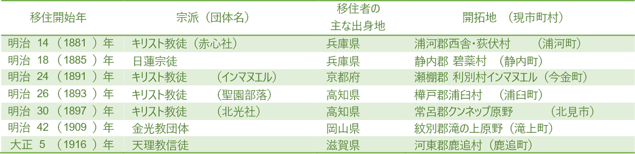 信仰を同じくする者が、新しい理想郷の建設を目指して団体移住した例も見られます。