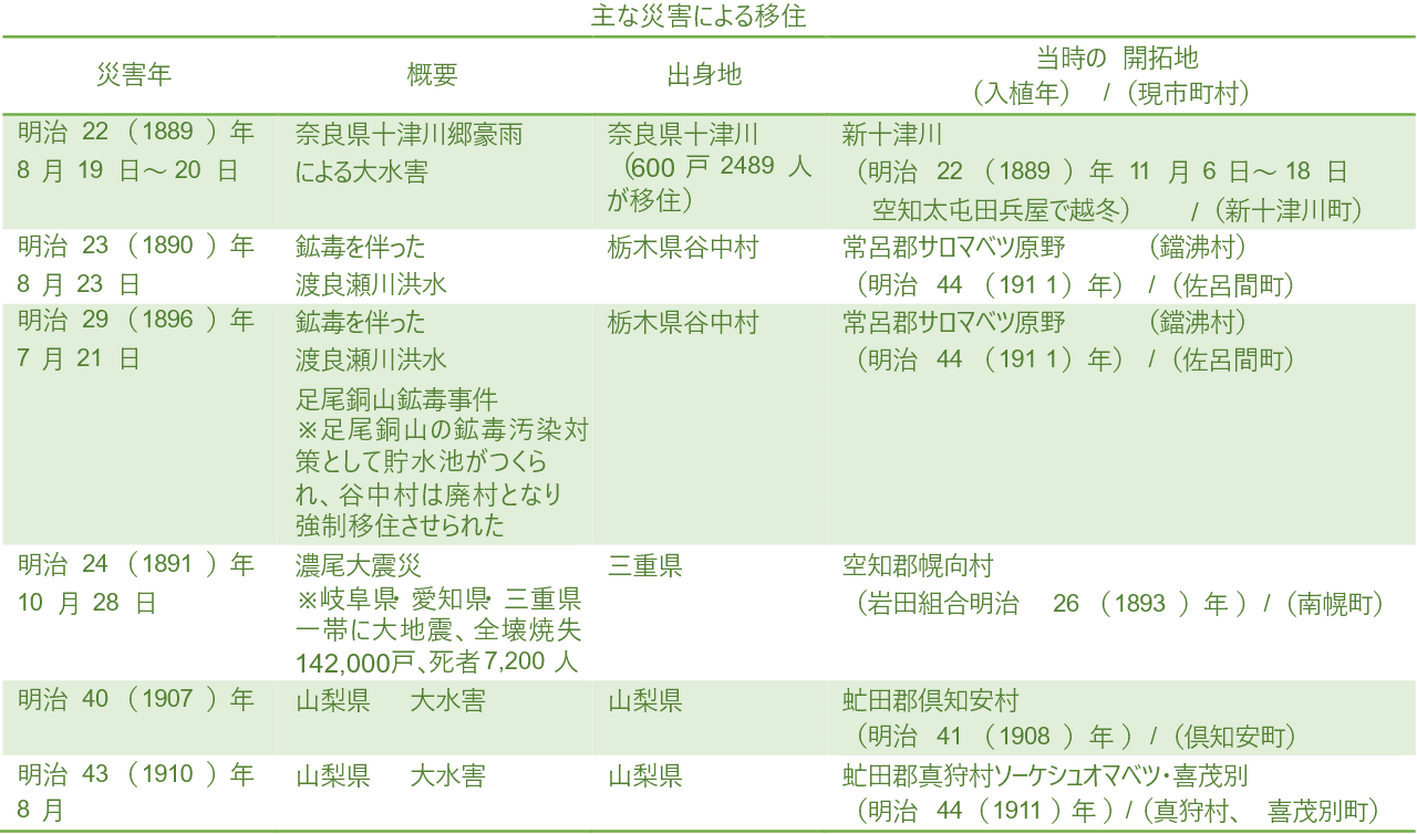 郷里(出身地)を同じくする人たちが、指導者を中心にまとまって移住し、互いに助け合って開拓に励みました。道庁もこの団体移住を奨励し、様々な便宜を与えました。その入植地には、出身地の言葉や風習などが伝えられました。